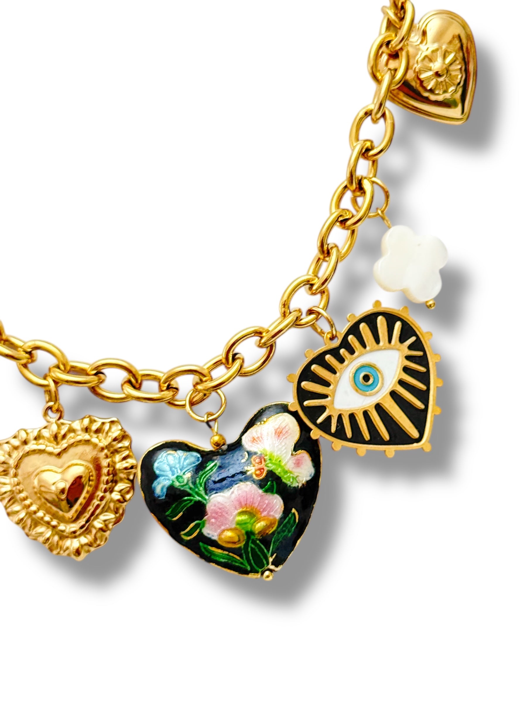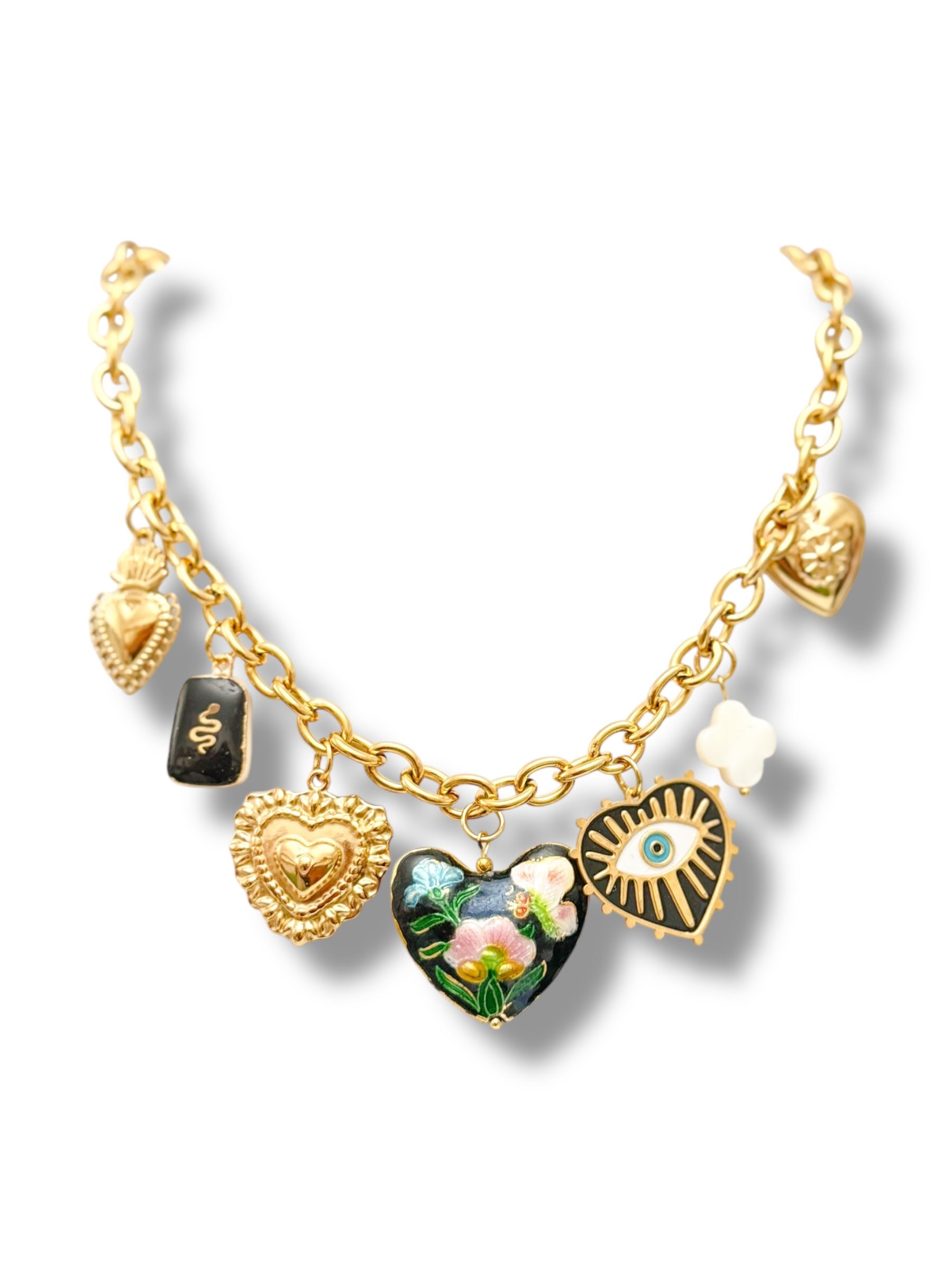 • Multiples pendentifs : cœur sacré, fleur émaillée, serpent, trèfle, œil protecteur 👁️💖