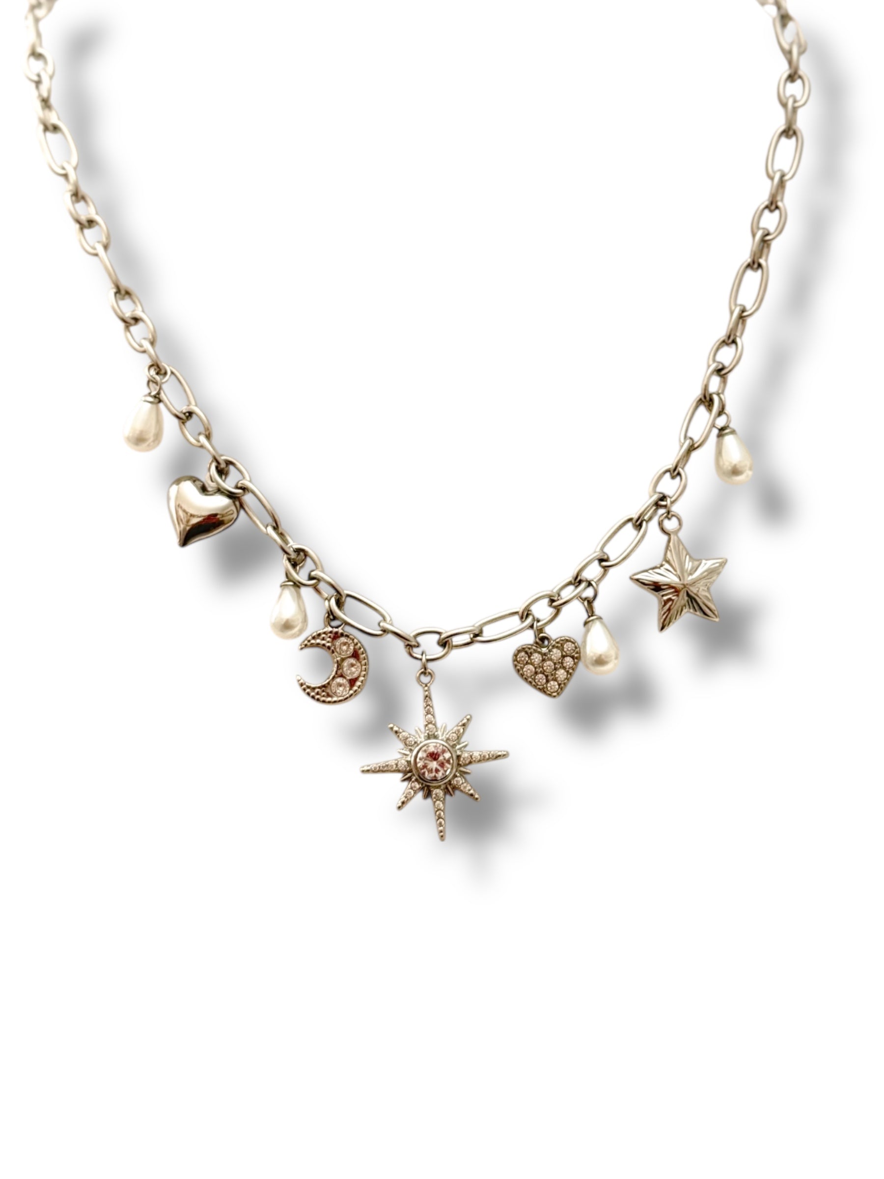 - Breloques : cœur, lune, étoile, perles et soleil incrustés de strass