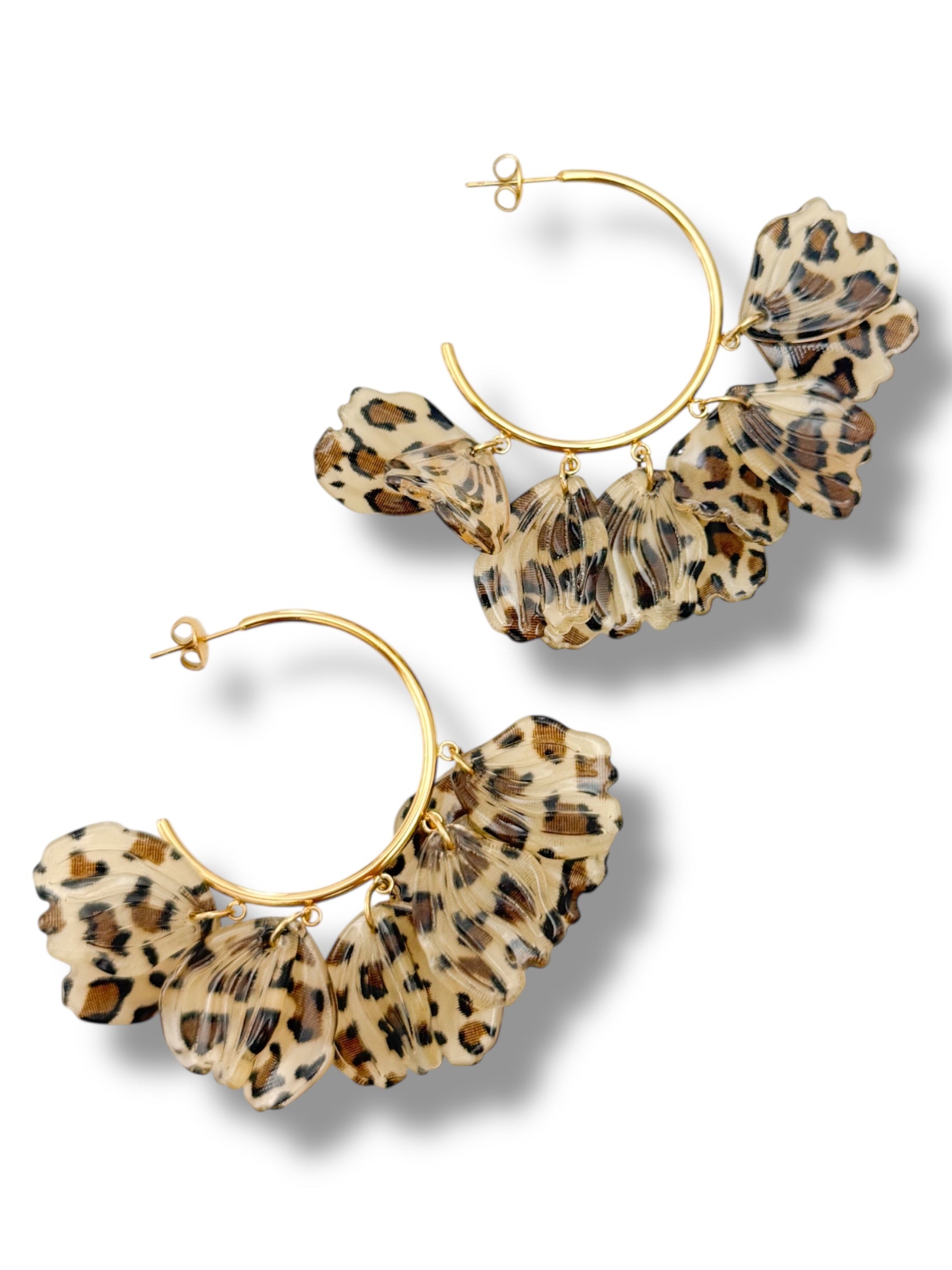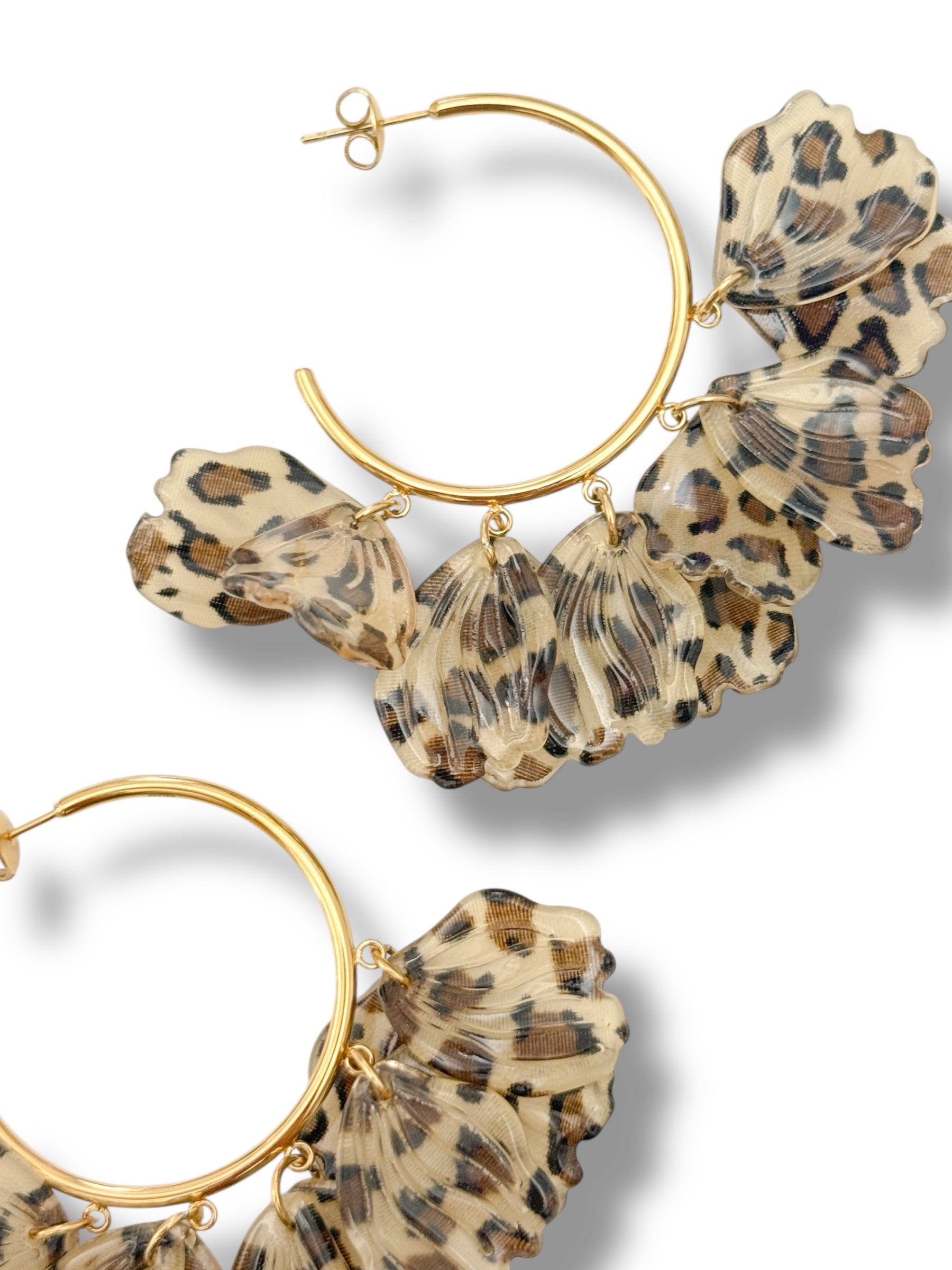 - Créoles légères avec pampilles effet coquillage imprimé léopard