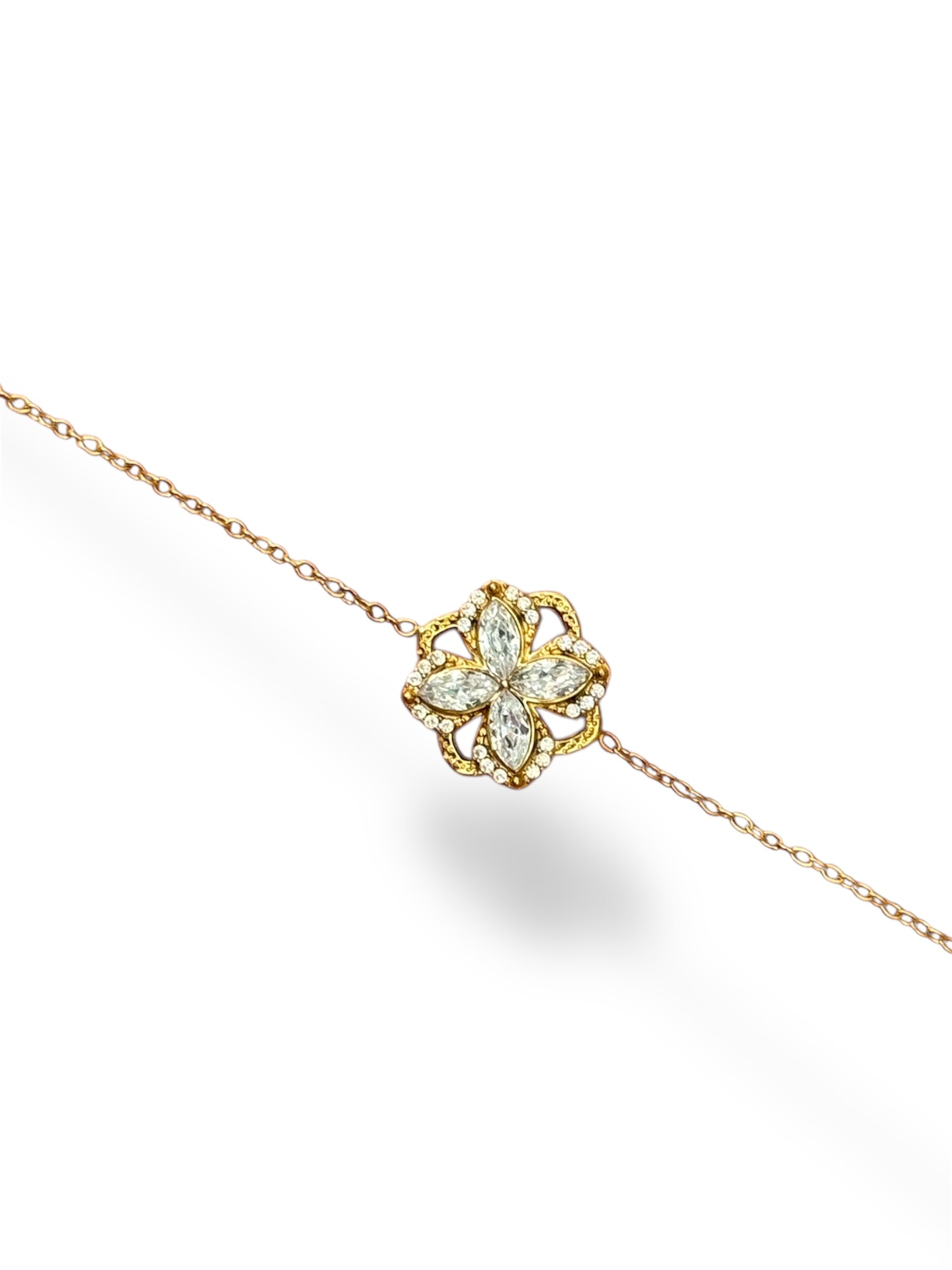 Un bracelet délicat orné d’une fleur scintillante en zircons, symbole d’élégance et de raffinement. Léger et intemporel, il se porte seul ou en accumulation pour sublimer chaque tenue.