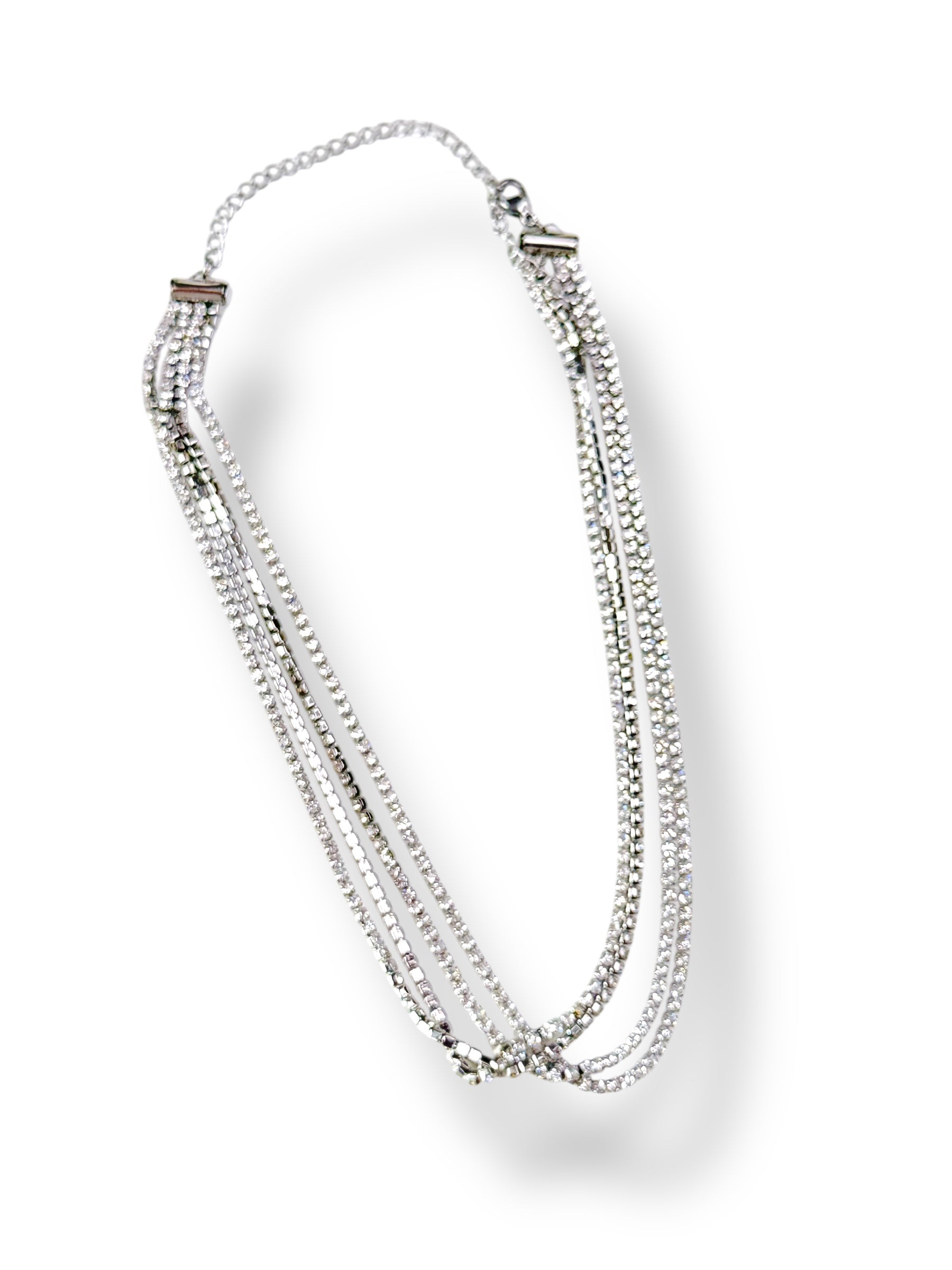 Faites rayonner vos soirées avec ce collier multi-rangs étincelant. Sa cascade de strass capte chaque reflet de lumière pour un effet glamour garanti. Chic et intemporel, il habille instantanément un décolleté ou une tenue simple pour un look sophistiqué.